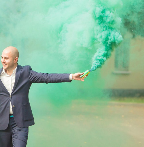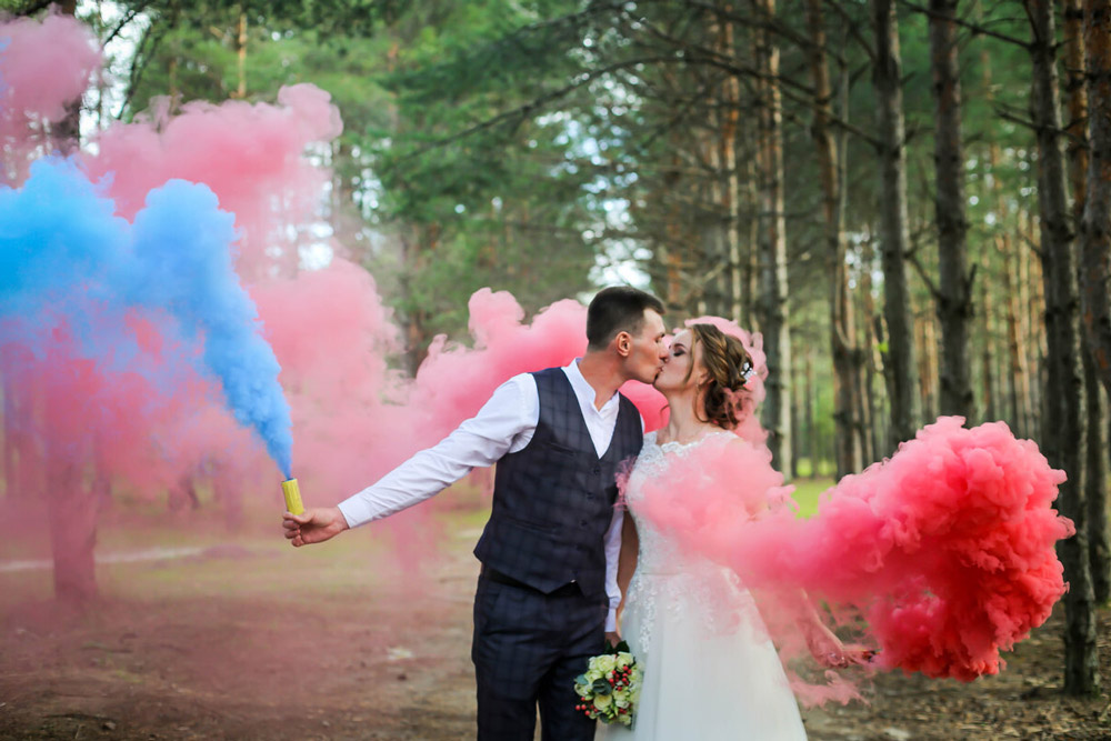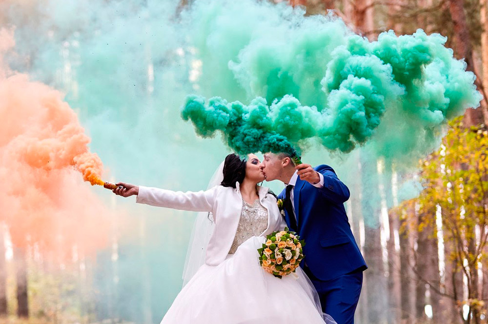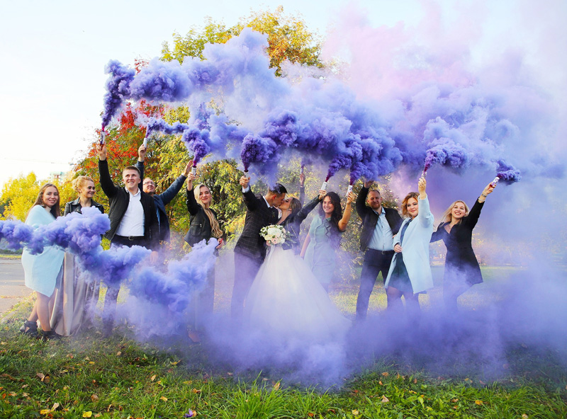Дымовые шашки с цветным дымом применяются любителями и профессиональными фотографами уже очень давно, но не теряют своей актуальности. А все дело в том, что на фотографиях они дают просто волшебный эффект. Дымовые шашки с дымом могут добавить контраста, даже в самый пасмурный осенний день, могут закрыть неприглядный задний фон или добавить необходимый яркий акцент. Купить цветной дым для фотосессии - это великолепная идея украсить мероприятие в любую погоду Причем цена шашки невысока, а свадьба или праздник станет красочней с таким спецэффектами.