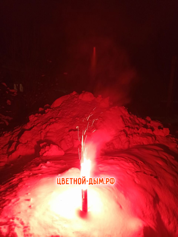 Фальшфейер (факел огня) красного цвета на 60 секунд, с фитилем в Мурманске.