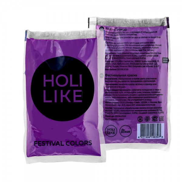 Краски Холи Holi Like фиолетового цвета идеально подходят для фестивалей, праздников, фото - и видеостудии, детских развлекательных и досуговых центров, молодежных лагерей.