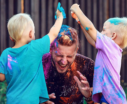 Отличная идея для детского праздника - взять множество пластиковых одноразовый стацанчиков, в каждый стаканчик насыпать по 20-30 грамм красок холи, таким образом вы создадите праздник целой ораве детей.
