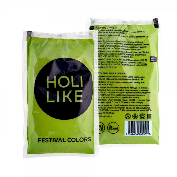 Краски Холи Holi Like салатового цвета идеально подходят для фестивалей, праздников, фото - и видеостудии, детских развлекательных и досуговых центров, молодежных лагерей.